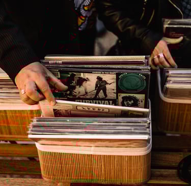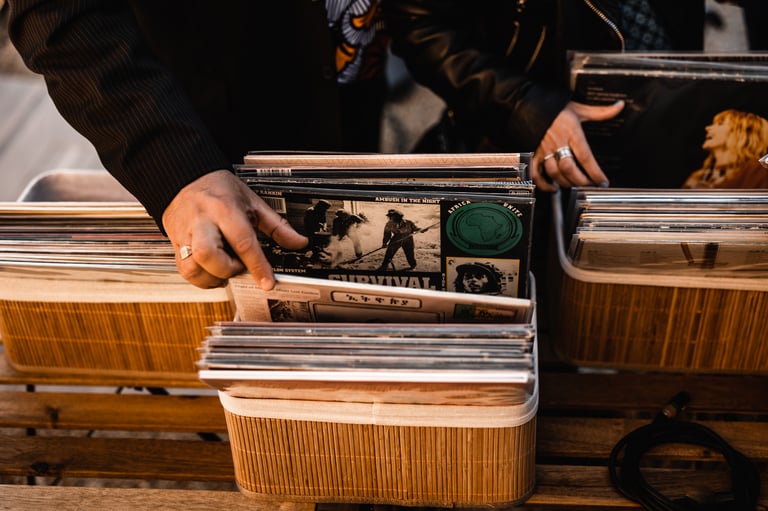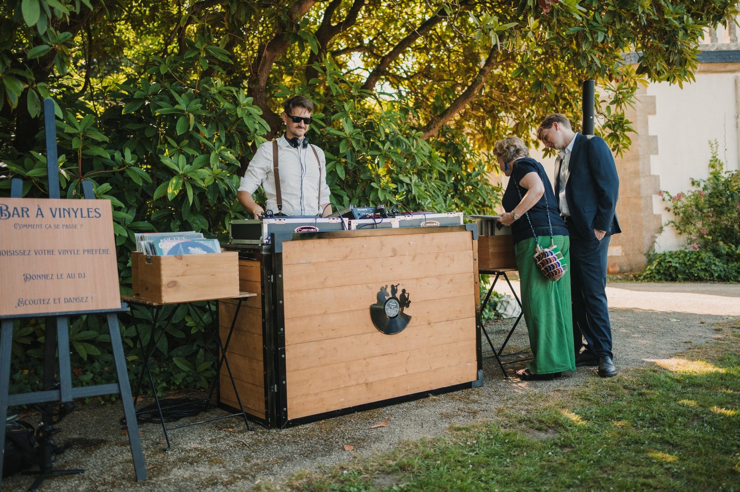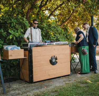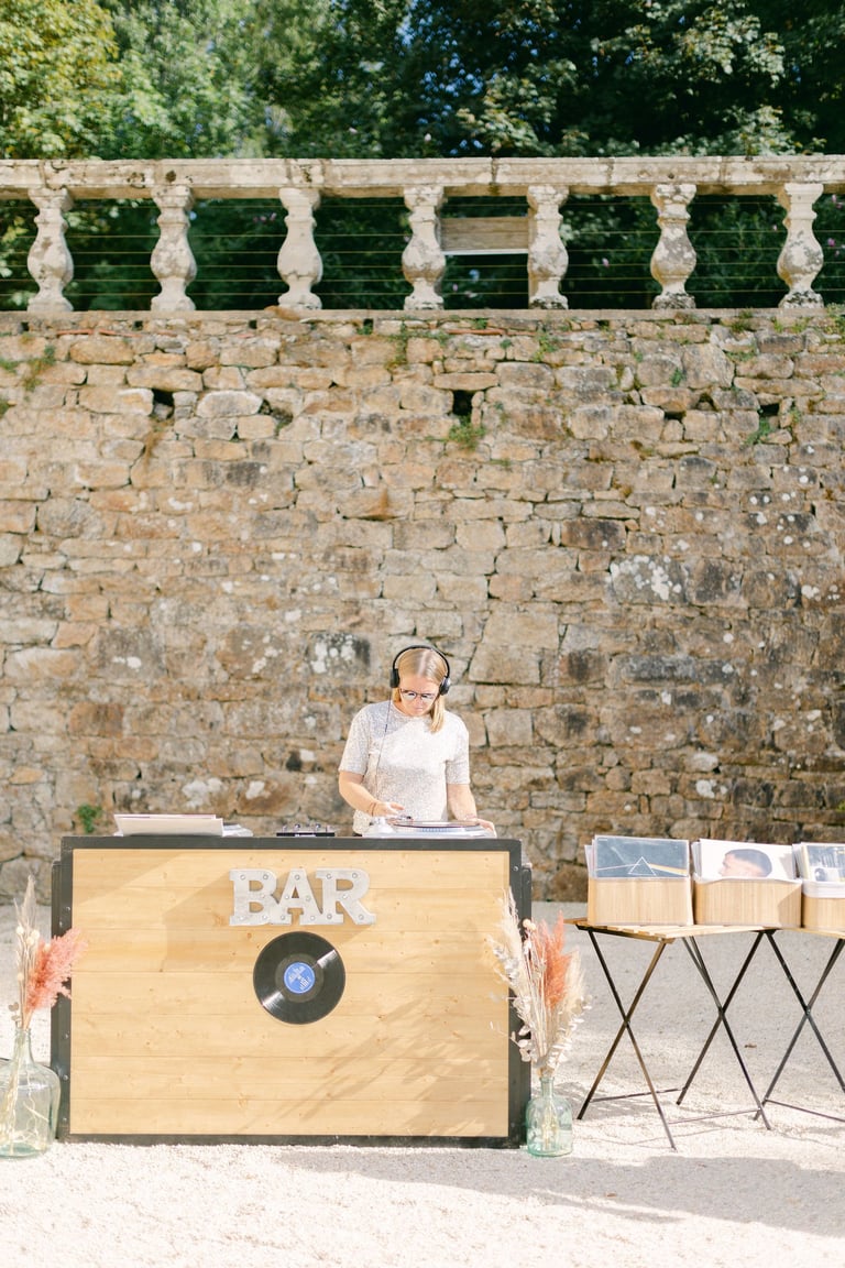 Le principe du bar à vinyles est de proposer à vos invités de choisir parmi notre sélection un ou plusieurs disques et de le faire passer avec l'aide du DJ. Ainsi les invités piochent les pépites qu’ils souhaitent écouter.