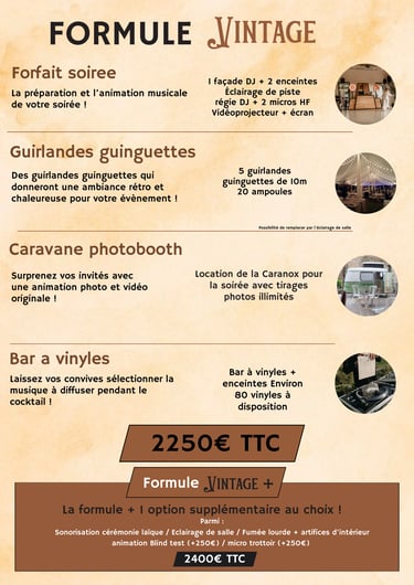Découvrez nos formules et nos prestations ci dessous !