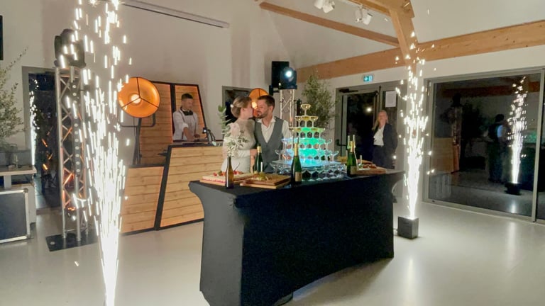 Afin de rendre plus spectaculaire votre entrée de salle ou votre ouverture de bal, optez pour la fumée lourde et avoir l’impression de danser sur les nuages ainsi que 2 artifices d’intérieur pour un effet WAHOU !